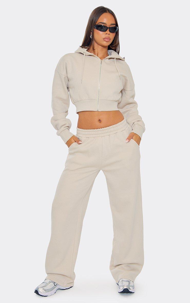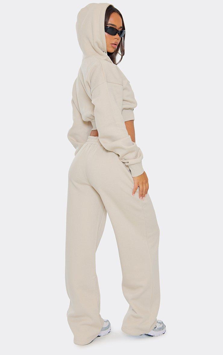Contrast Panel Wide Leg Detail Joggers In Stone