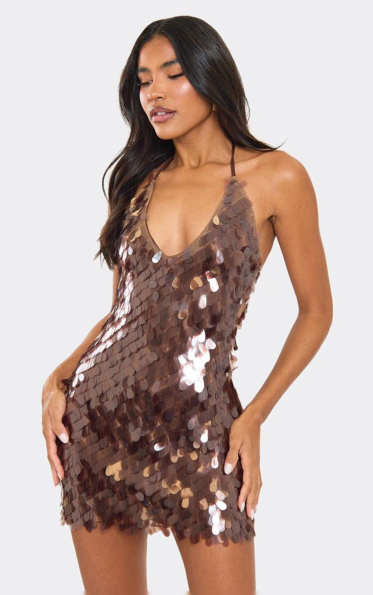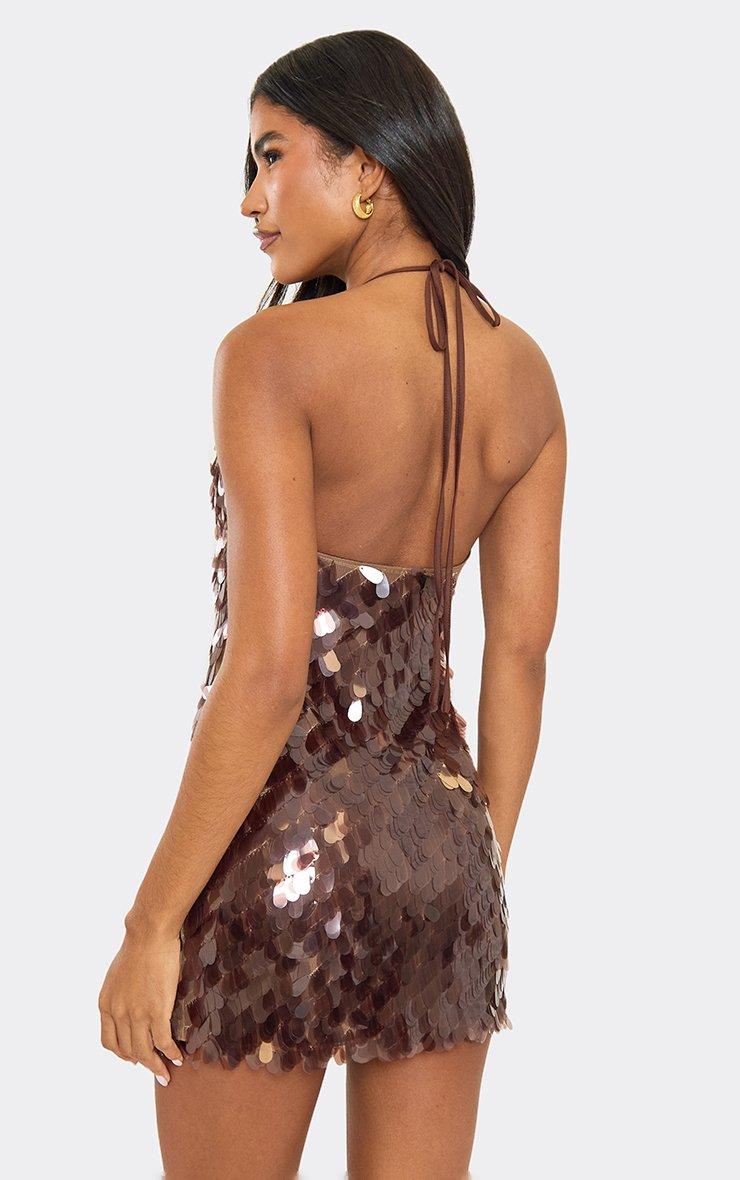 Plunge Gold Trim Detail Mini Dress In Leopard Print Sequin