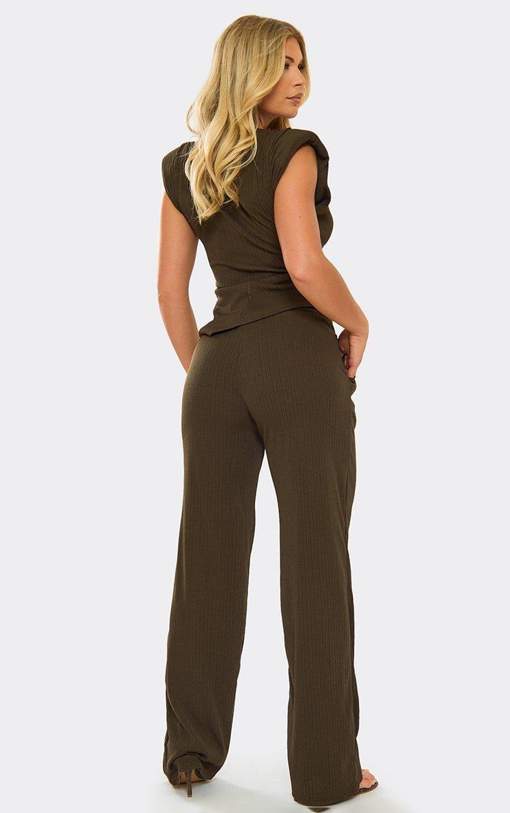 Asymmetric Top And Wide Leg Trousers Co-Ord Set In Brown