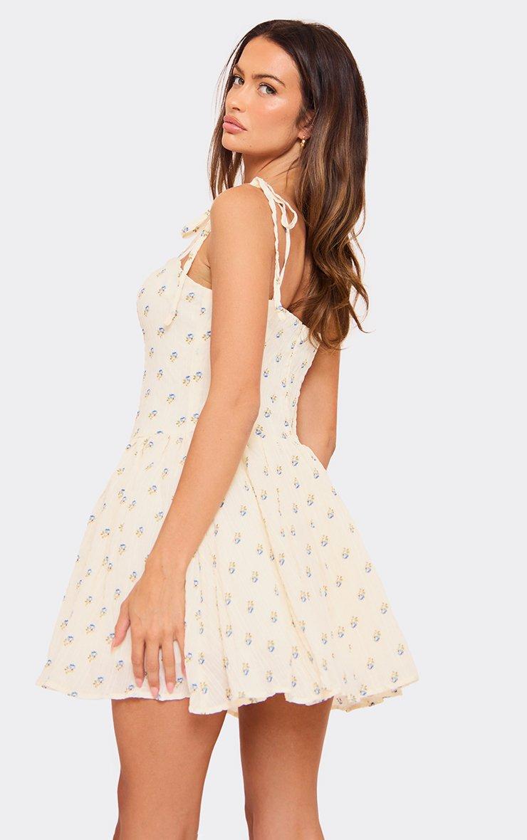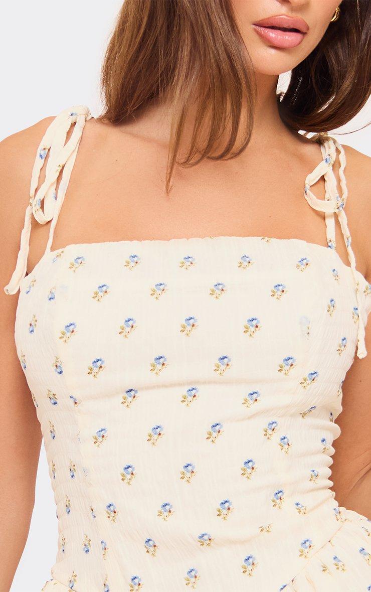 Square Neck Tie Straps Flippy Hem Mini Dress In Blue Floral Print