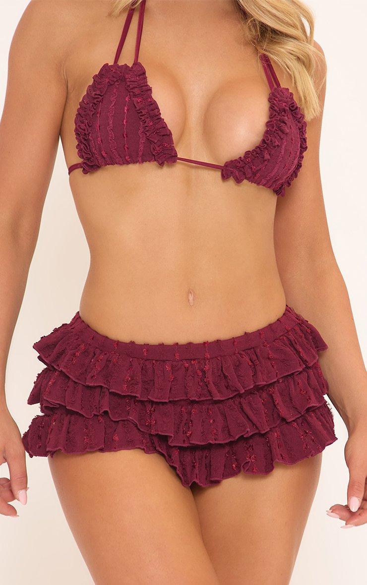 low rise layered frill micro shorts in burgundy texture