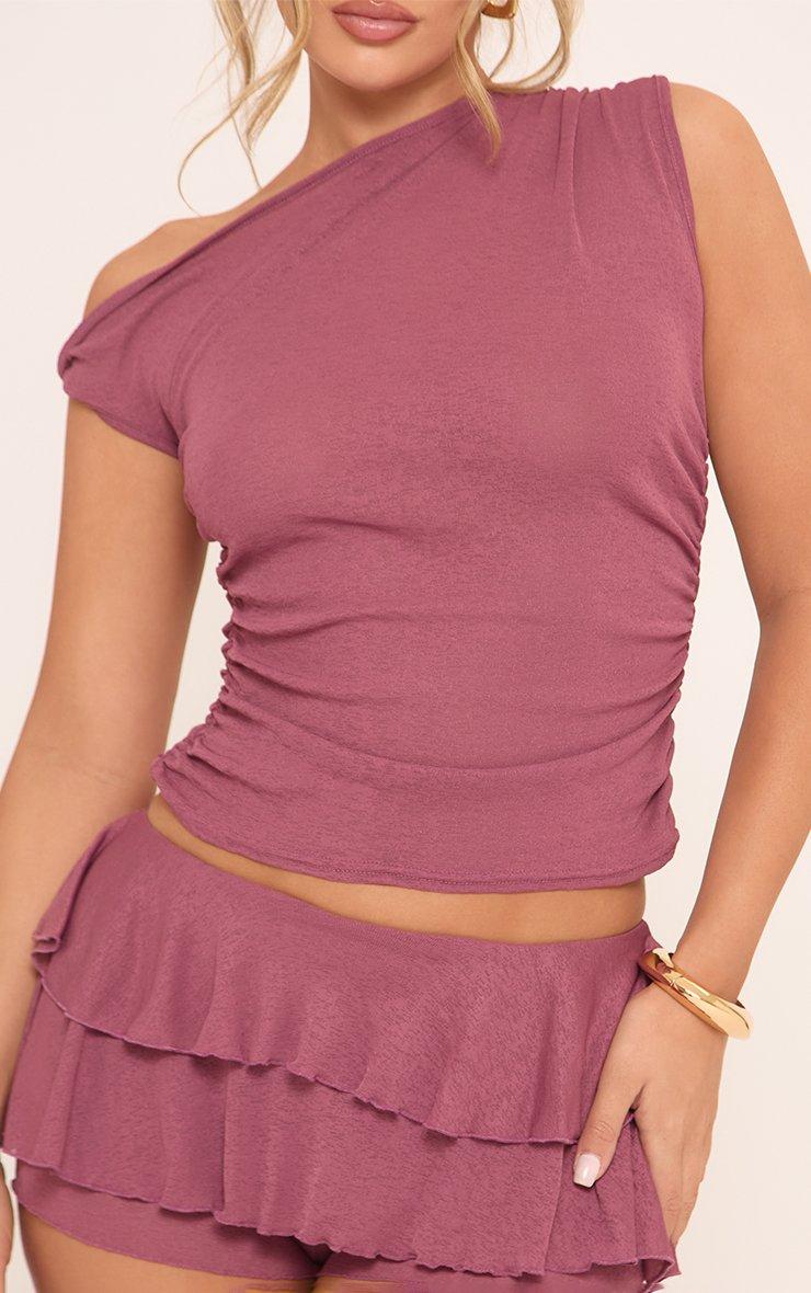 Off The Shoulder Ruched Top In Plum