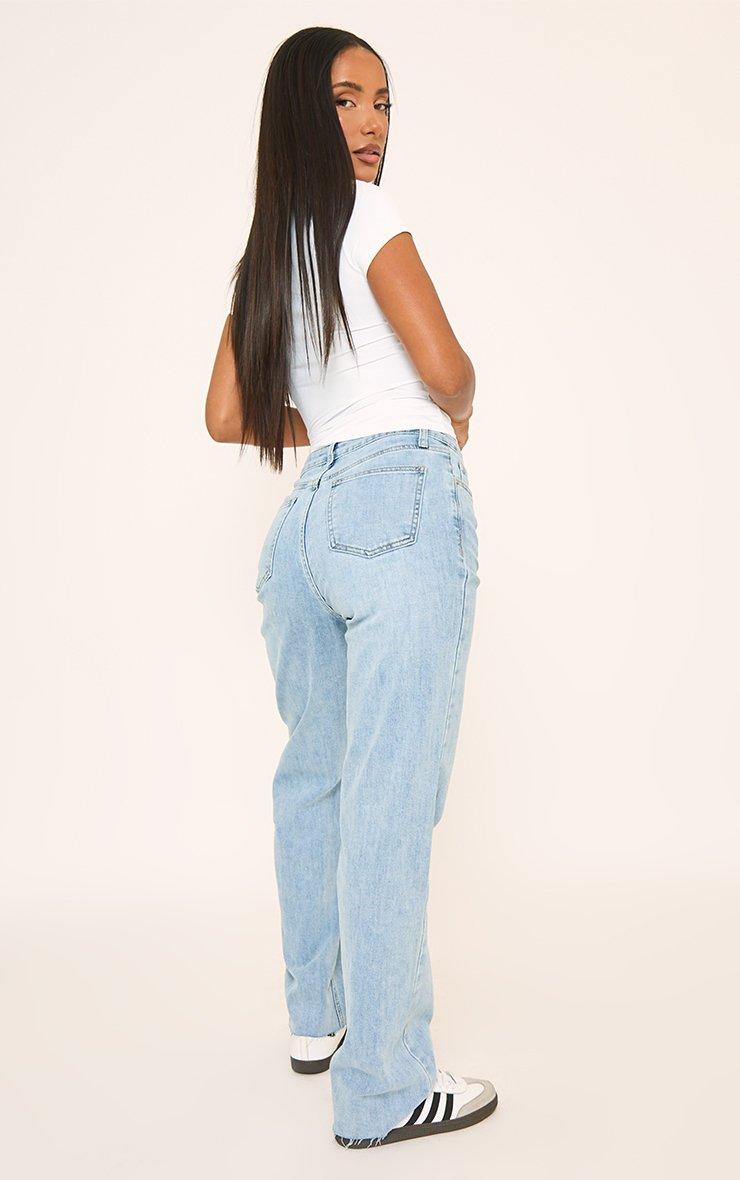 High Waist Straight Leg Stretch Jeans In Light Blue Denim
