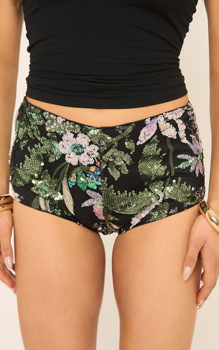 Low Rise Embellished Detail Knicker Shorts In Black Sequin