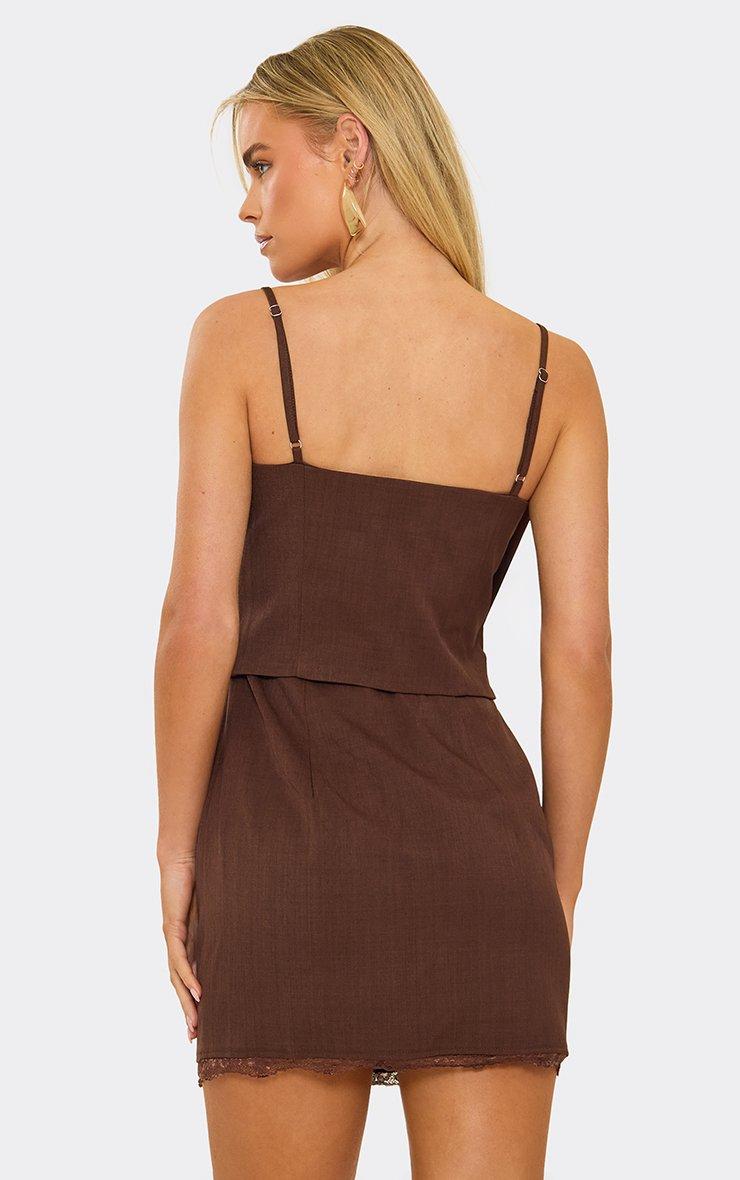 Lace Trim Corset Overlay Mini Dress In Chocolate Brown