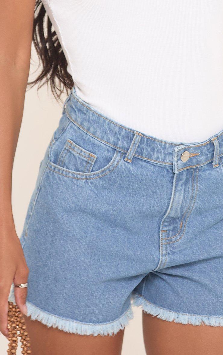 Mid Rise Frayed Hem Detail Shorts In Blue Denim