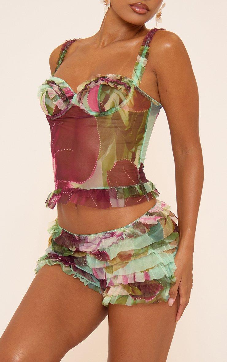 Bandeau Crop Top In Multi Printed Slinky