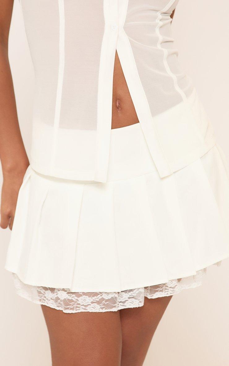 Mid Rise Lace Trim Detail Pleated Mini Skirt In White