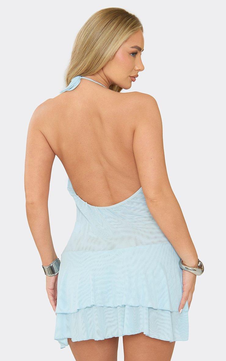 Halterneck Layered Hem Sheer Mini Dress In Baby Blue