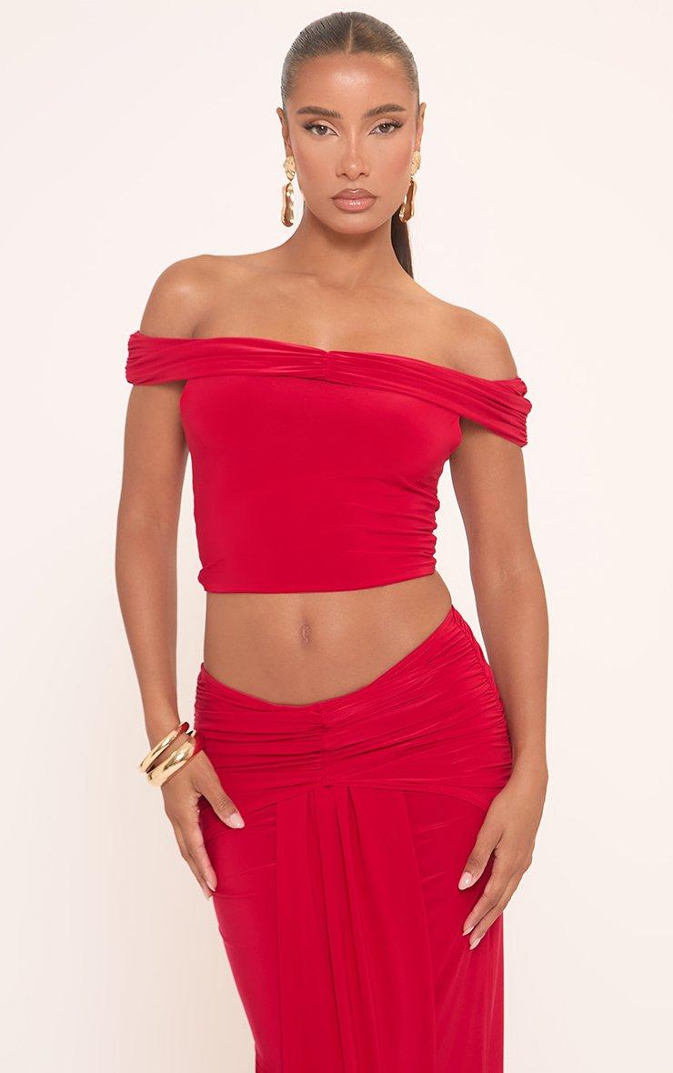 Low Rise Draped Front Maxi Skirt In Red Slinky
