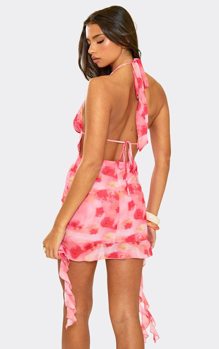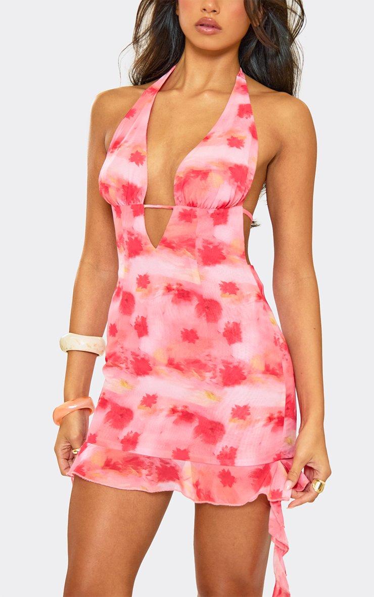 Strappy Scoop Neck Mini Dress In Pink Floral Texture