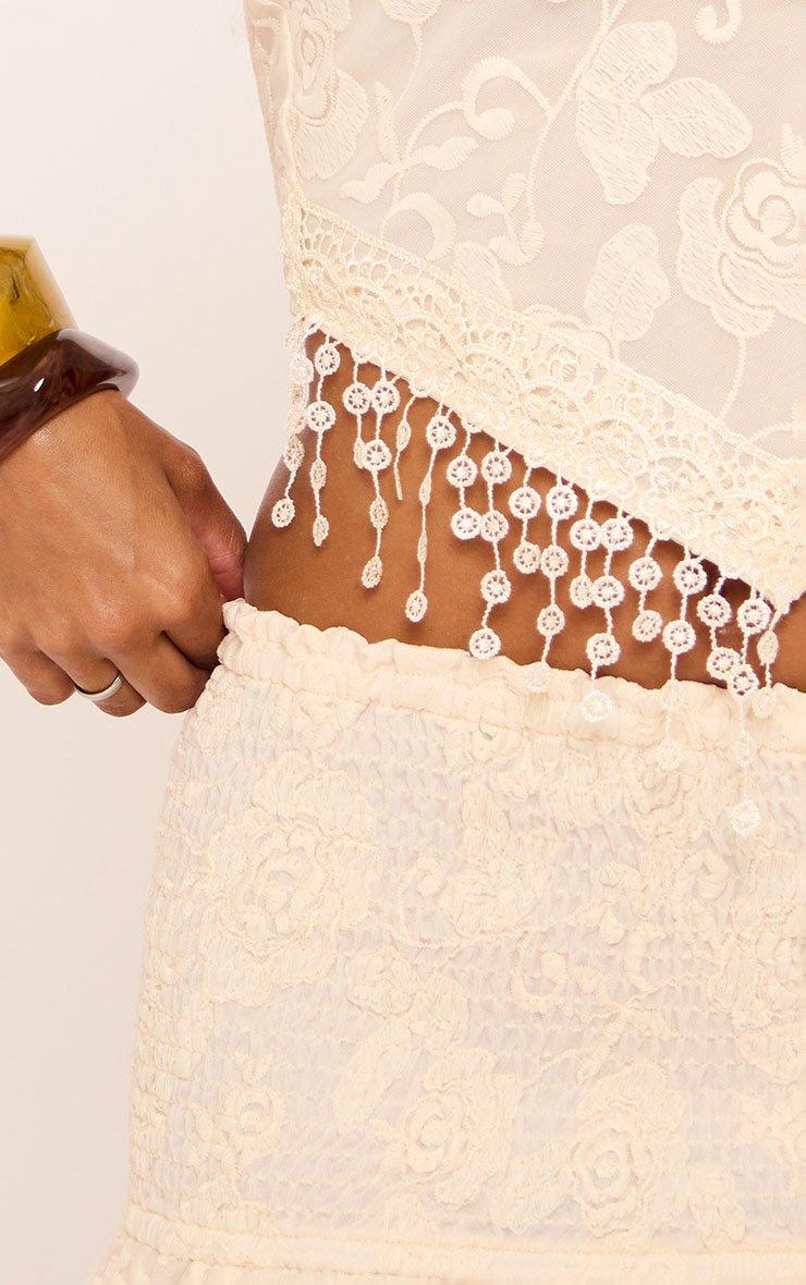 Bandeau Fringe Detail Dipped Hem Top In Stone