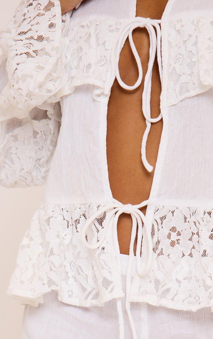 long sleeve tie front frill detail top in white
