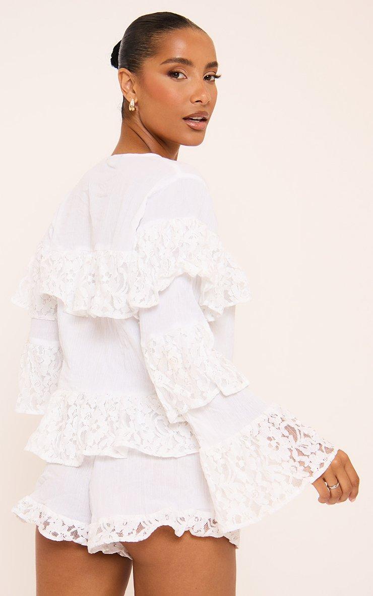 Mid Rise Lace Trim Floaty Mini Shorts In White