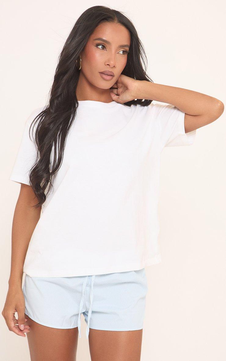 Mid Rise Tie Waist Detail Shorts In Blue Pinstripe