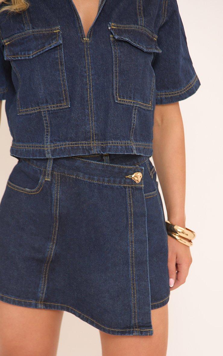 Short Sleeve Collared Pocked Detail Top In Indigo Blue Denim