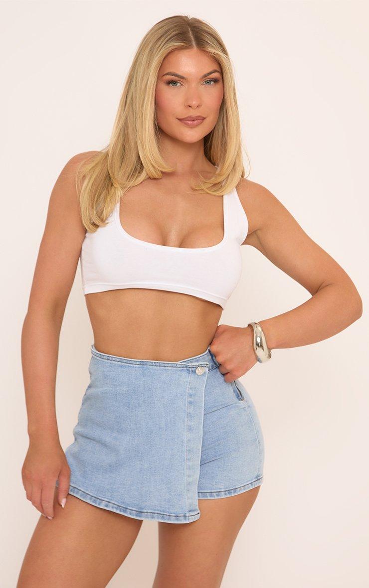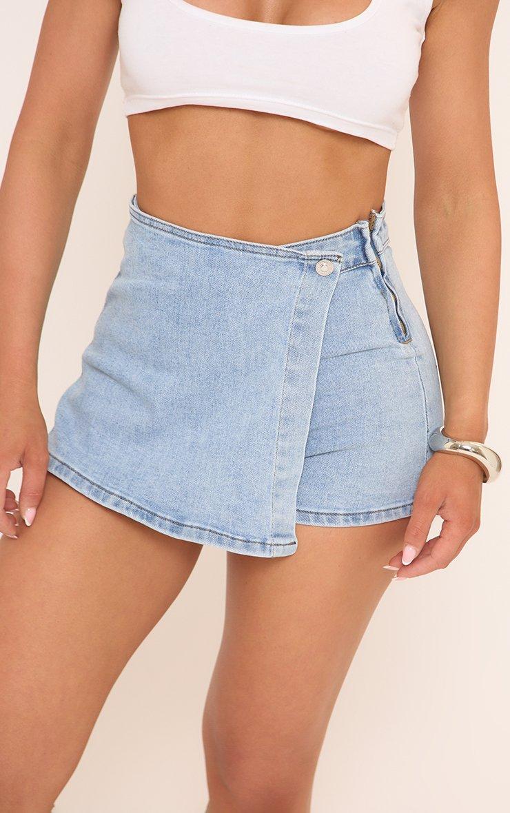 High Waist Wrap Front Skort In Blue Denim