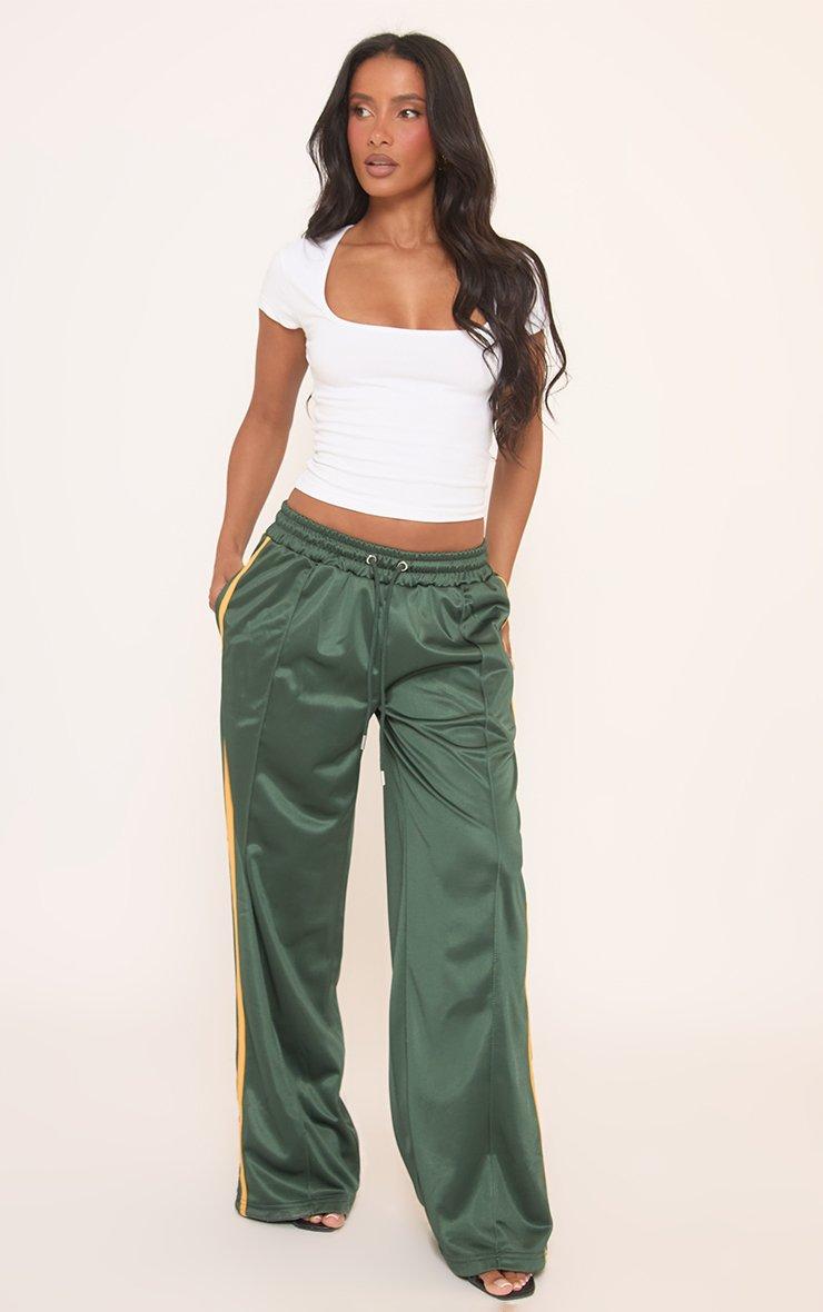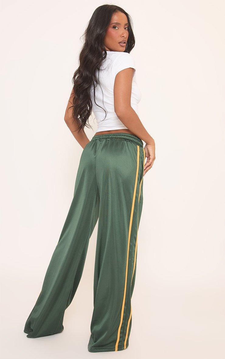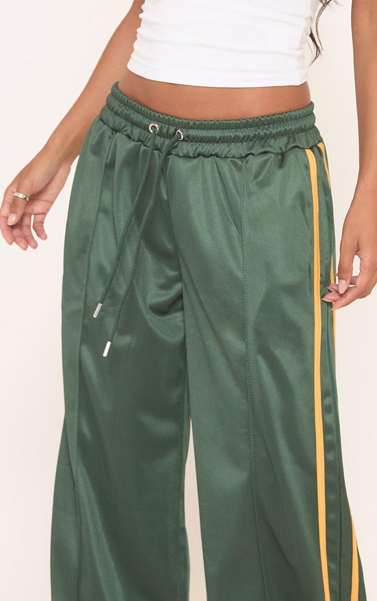 Mid Rise Tie Waist Detail Contrast Side Stripe Joggers In Green