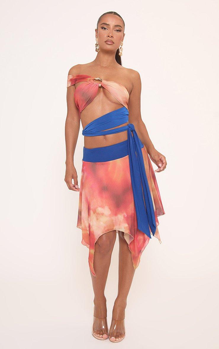One Shoulder Contrast Trim Detail Bralet Top In Multi Print