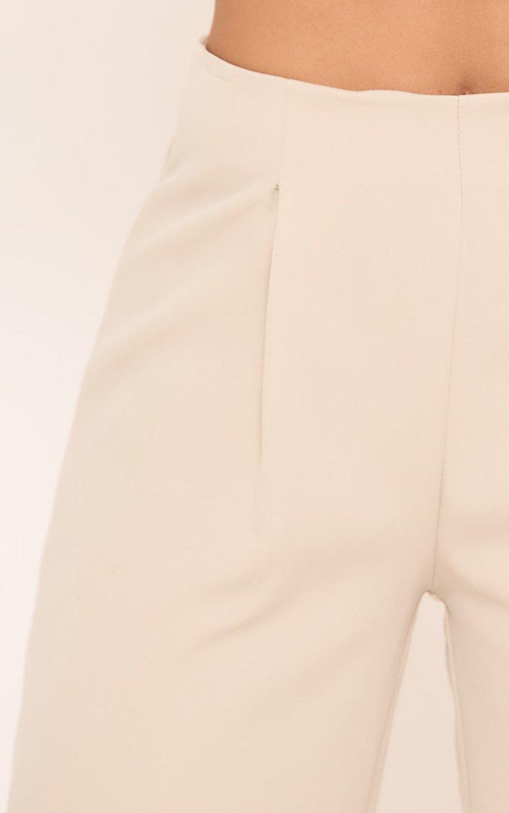 Low Rise Tie Waist Wide Leg Detail Trousers In Stone Linen
