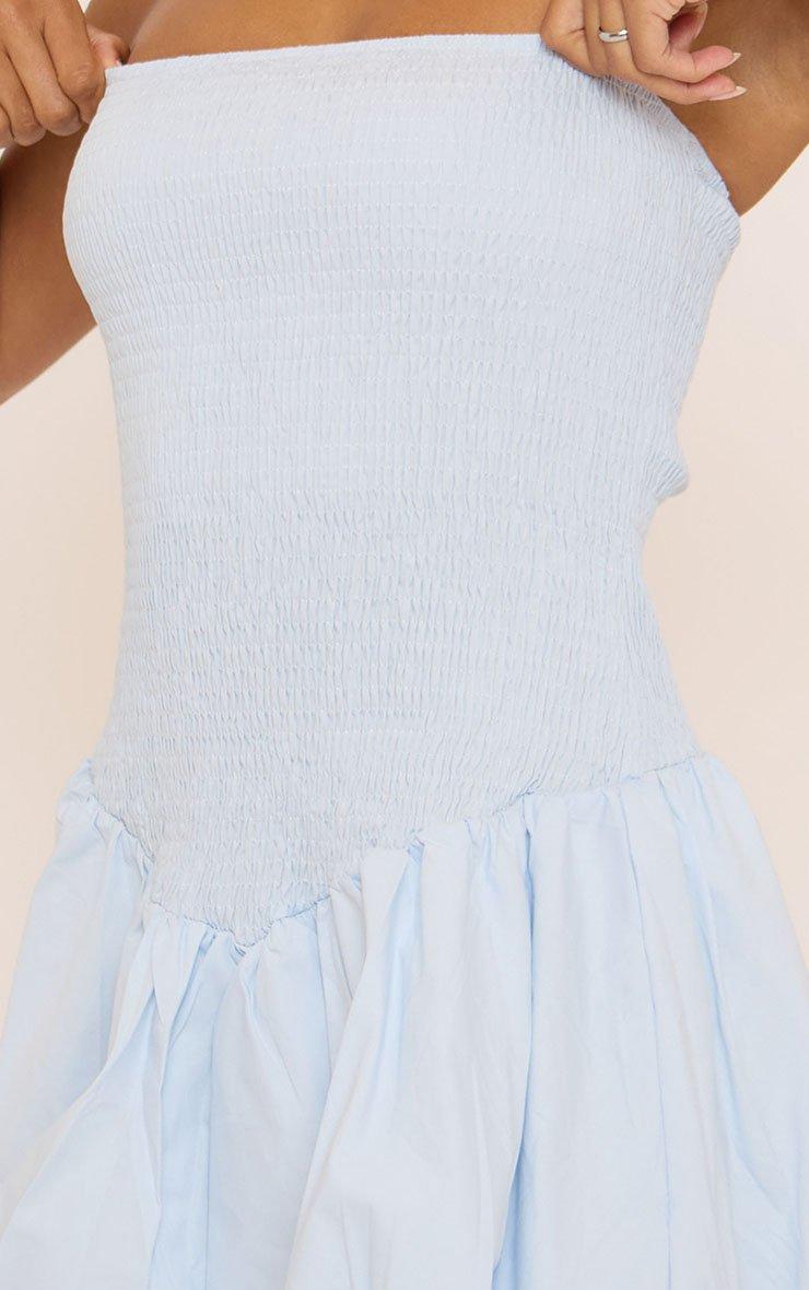 Bandeau Drop Waist Puff Hem Mini Dress In Blue