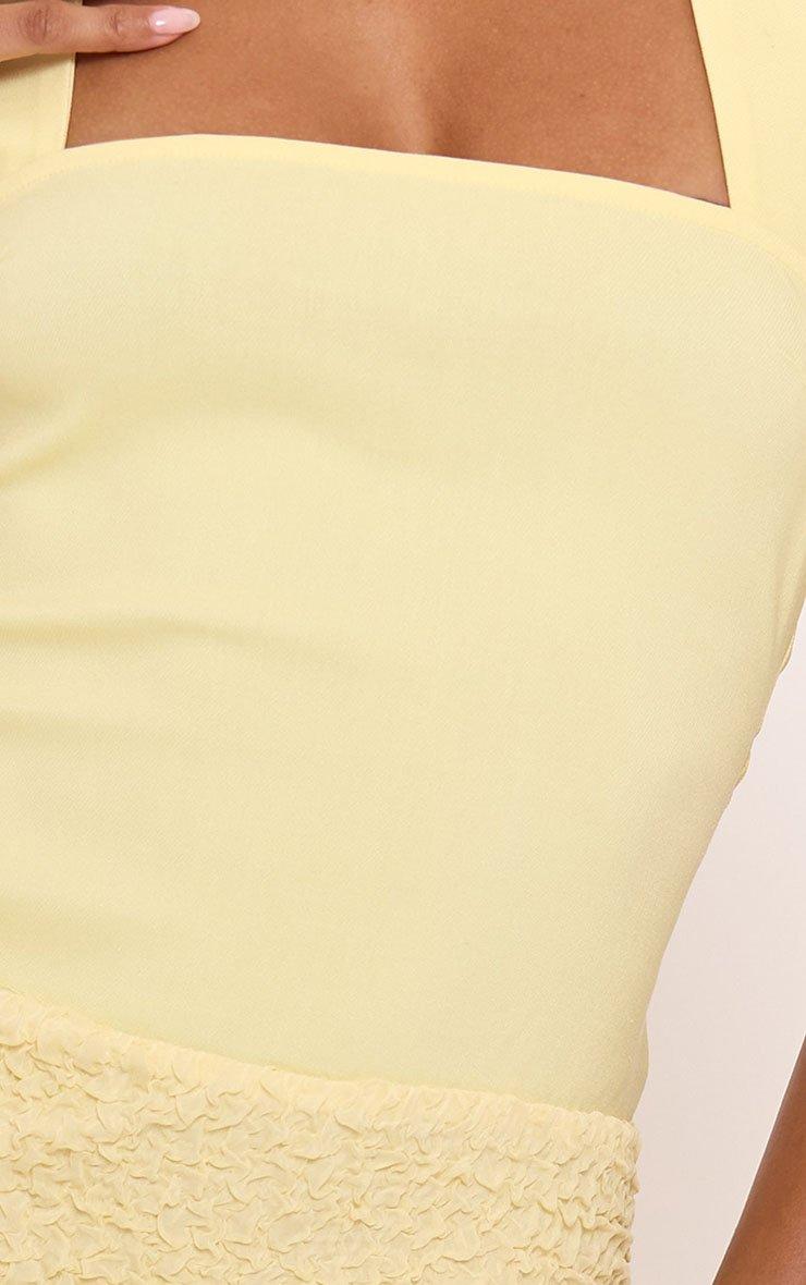 Halterneck Textured Skirt Detail Mini Bodycon Dress In Yellow