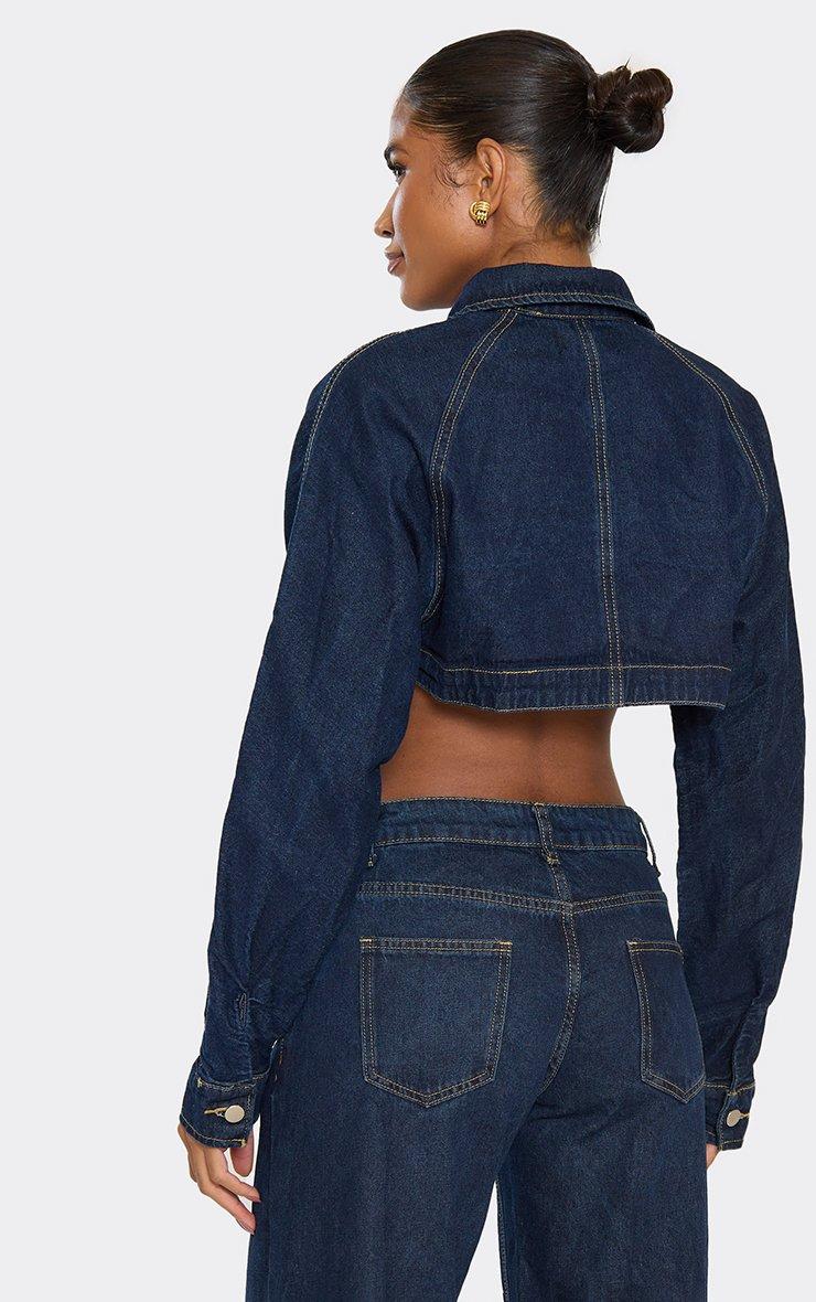 Long Sleeve Pocket Detail Crop Top In Indigo Blue Denim