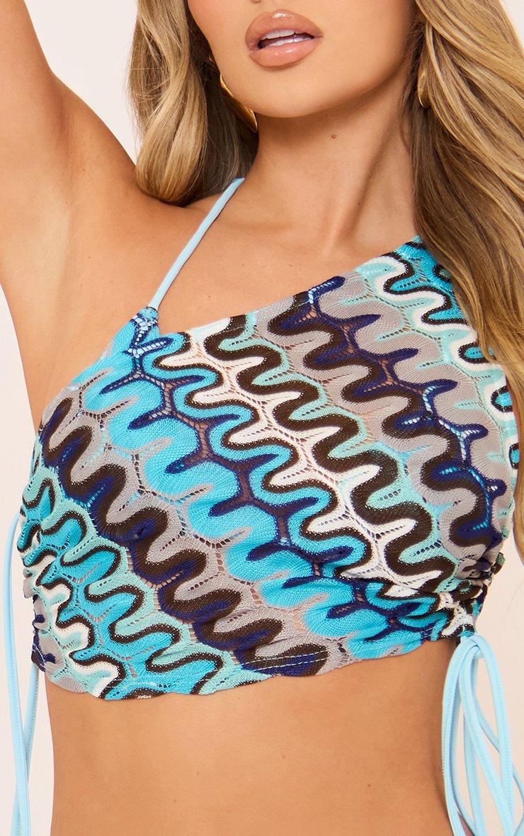 One Shoulder Ruched Top In Blue Aztec Print Texture