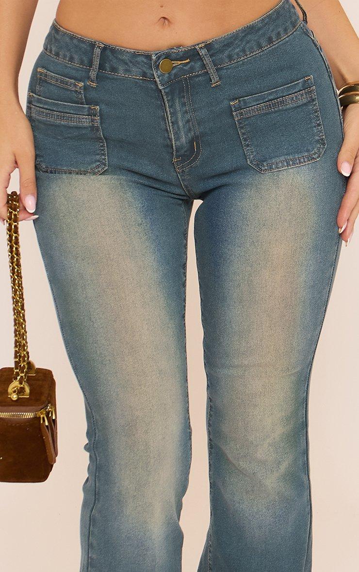 Mid Rise Straight Leg Detail Jeans In Washed Blue Denim