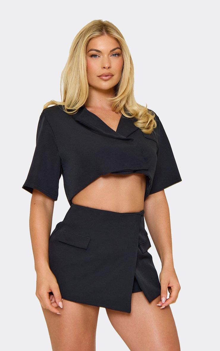 Cut Out Asymmetric Blazer In Black Woven