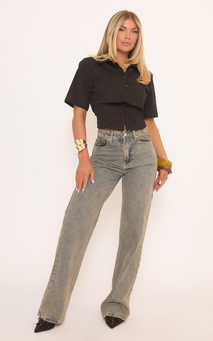 Short Sleeve Fitted Waist Shirt In Black