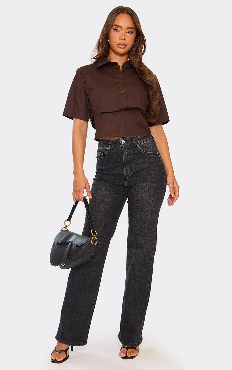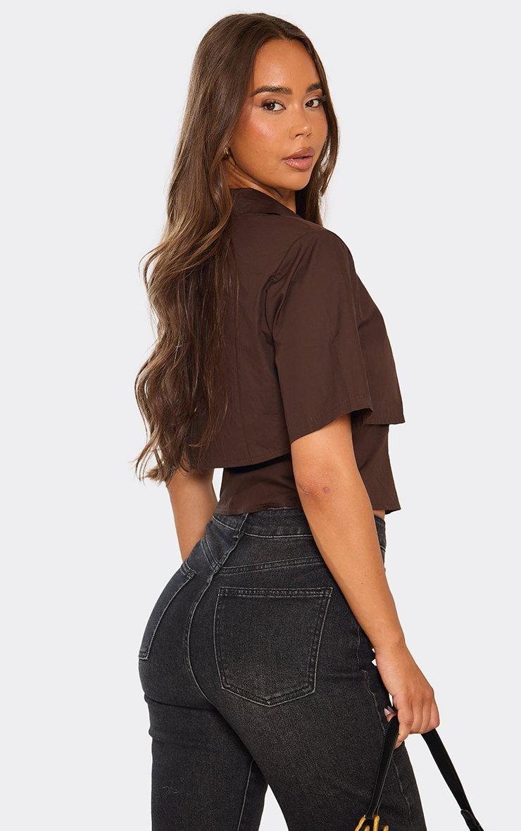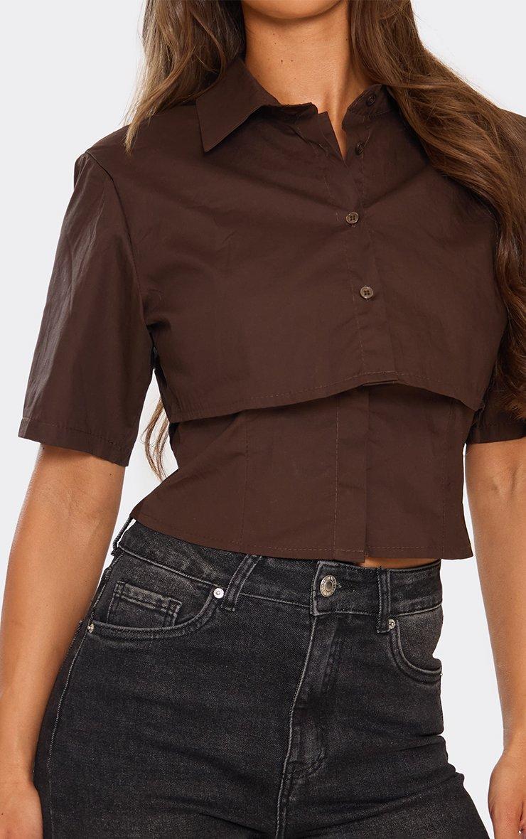 Short Sleeve Fitted Waist Shirt In Chocolate Brown