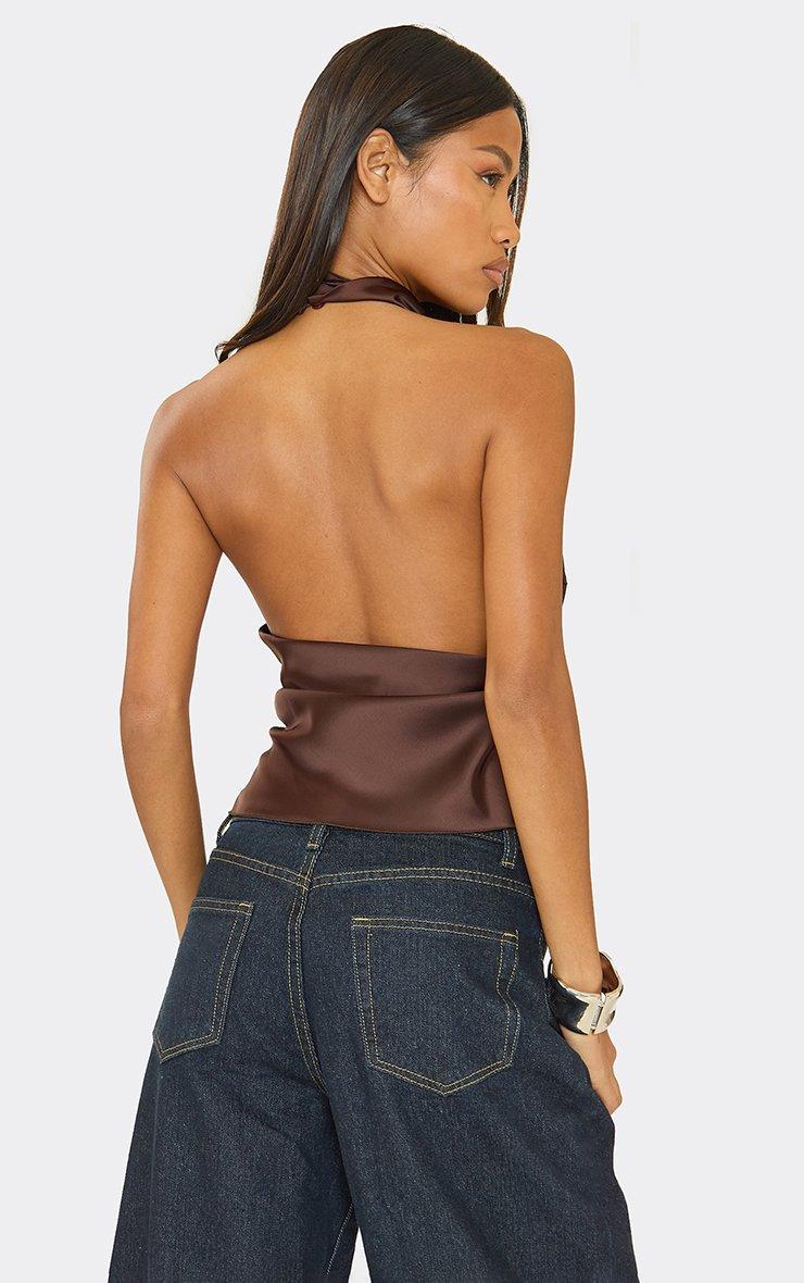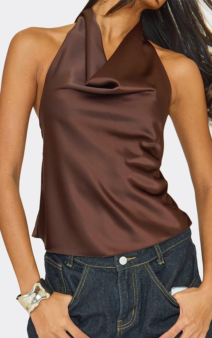Sleeveless Cowl Neck Open Back Detail Top In Chocolate Brown