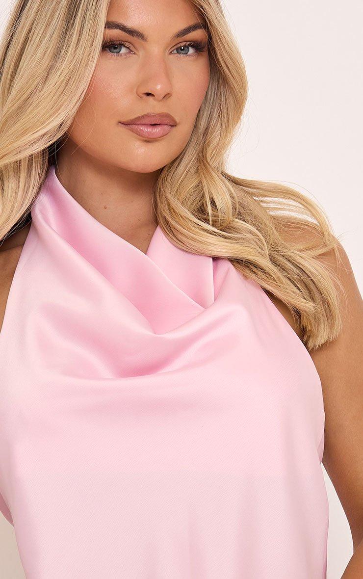 Sleeveless Cowl Neck Open Back Detail Top In Pink