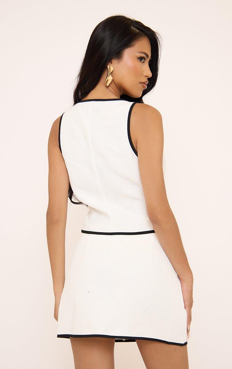 Mid Rise Contrast Seam Detail Mini Skirt In White