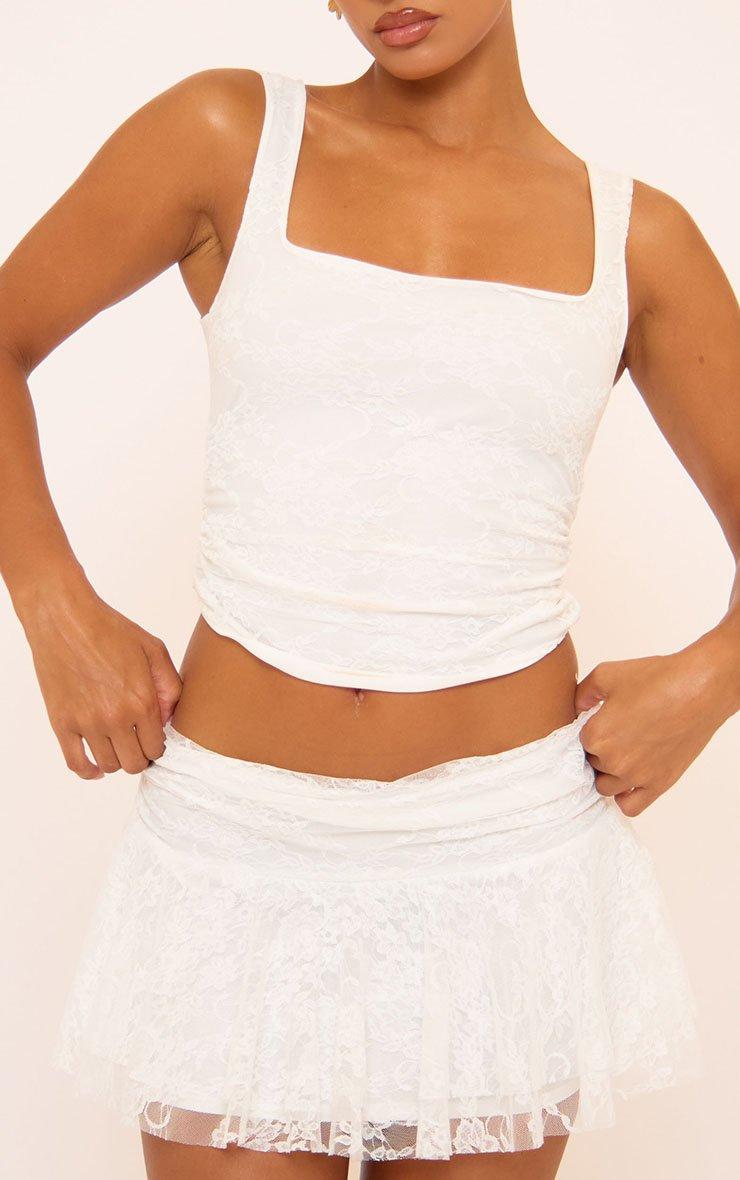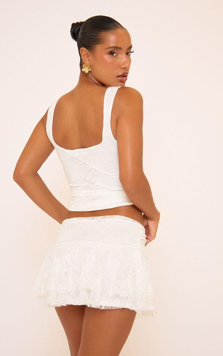 Square Neck Lace Up Front Detail Structured Corset Top In Cream
