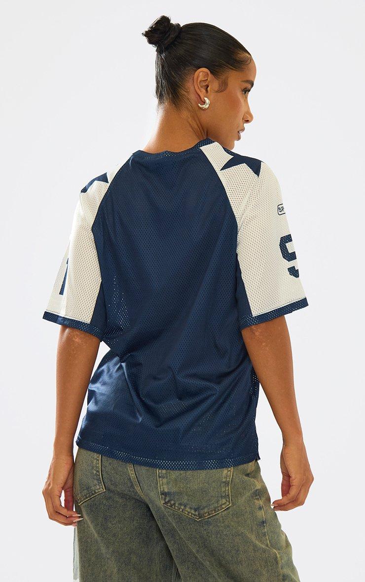 Short Sleeve Varsity Football Top In Dark Blue