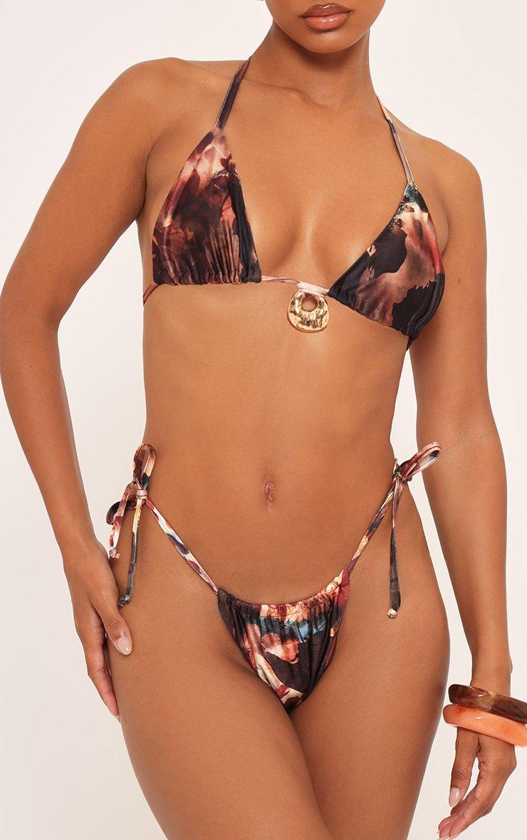 Triangle Trim Detail Bikini Set In Multi Abstract Animal Print