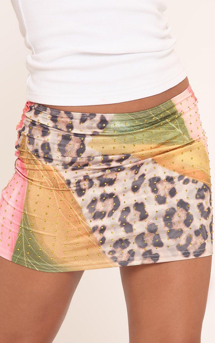 Mid Rise Mini Bodycon Skirt In Leopard Floral Multi Print