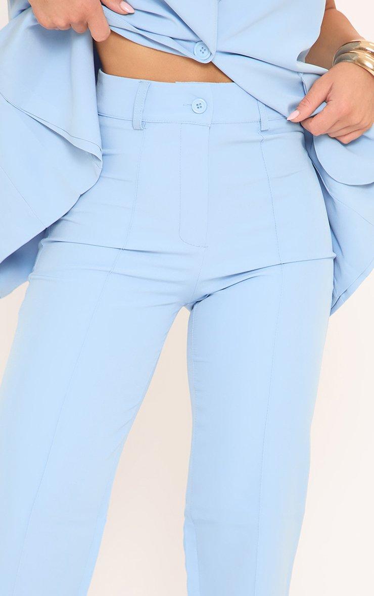 Mid Rise Wide Leg Tailored Trousers In Blue