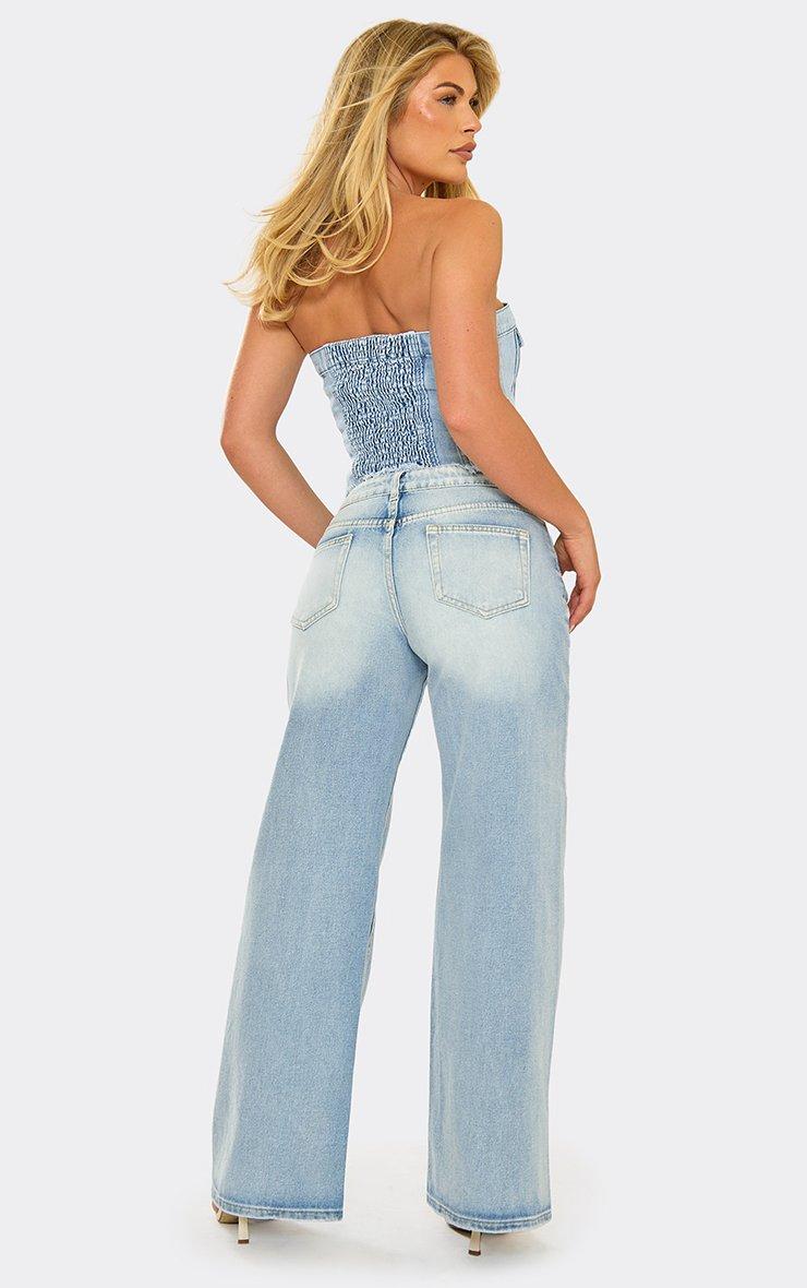 Halterneck Zip Up Corset Top In Mid Blue Wash Denim