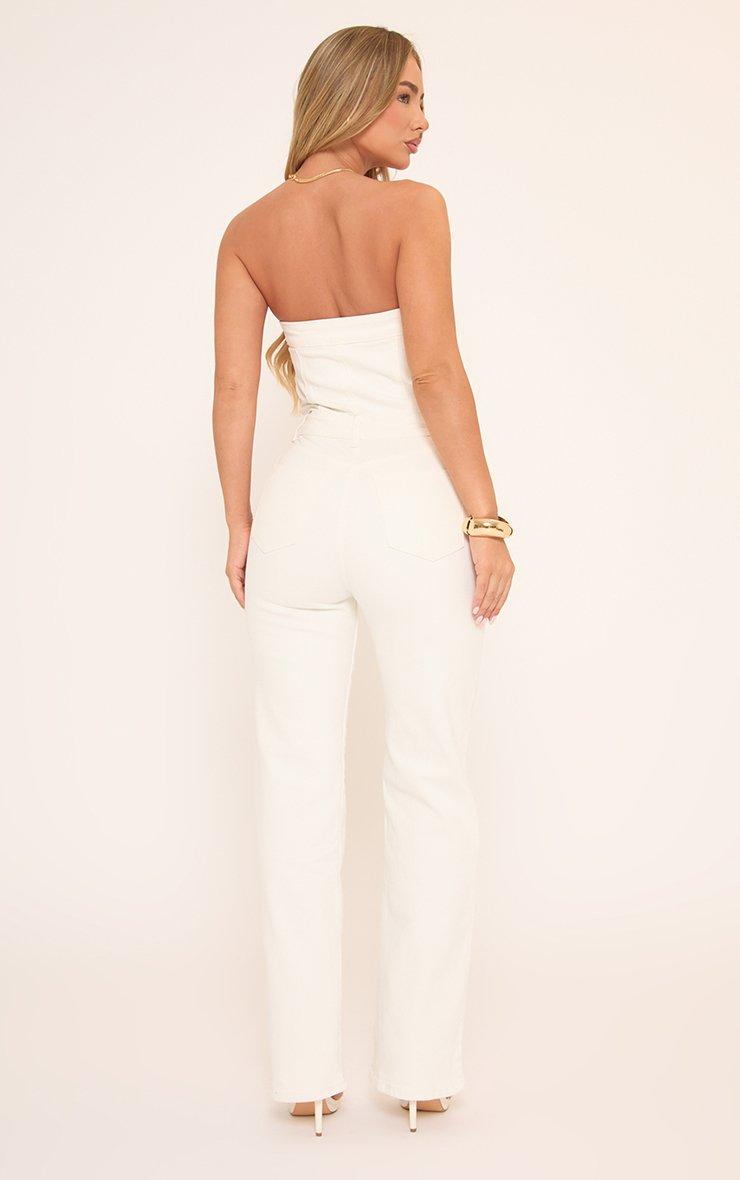 Bandeau Wide Leg Jumpsuit In White Denim