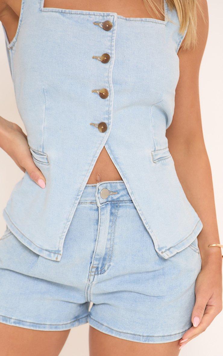 Low Rise Fold Over Waistband Shorts In Blue Denim