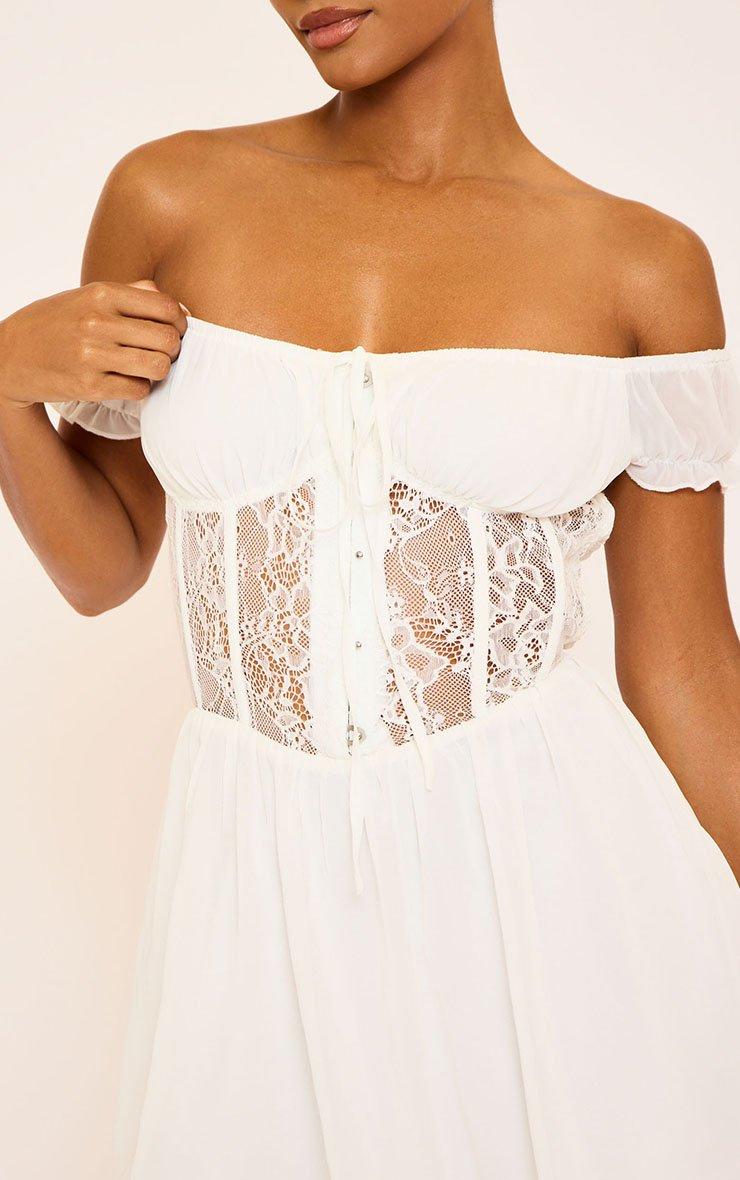 Off The Shoulder Hook And Eye Detail Corseted Mini Dress In White
