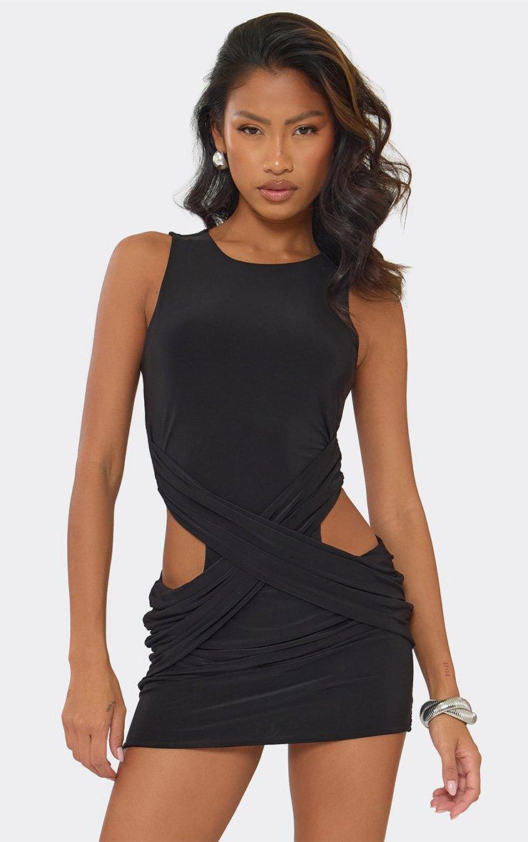 Sleeveless Twisted Front Cut Out Side Detail Mini Dress In Black