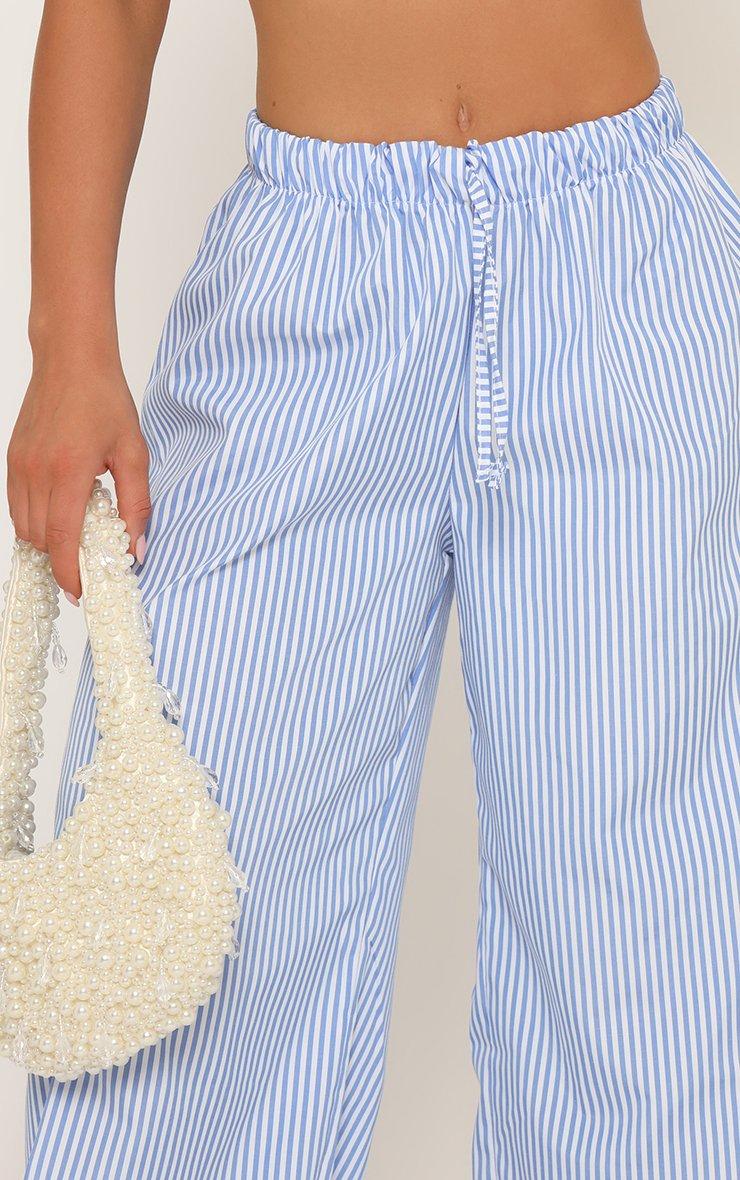 High Waist Tie Detail Wide Leg Trousers In Blue Stripe