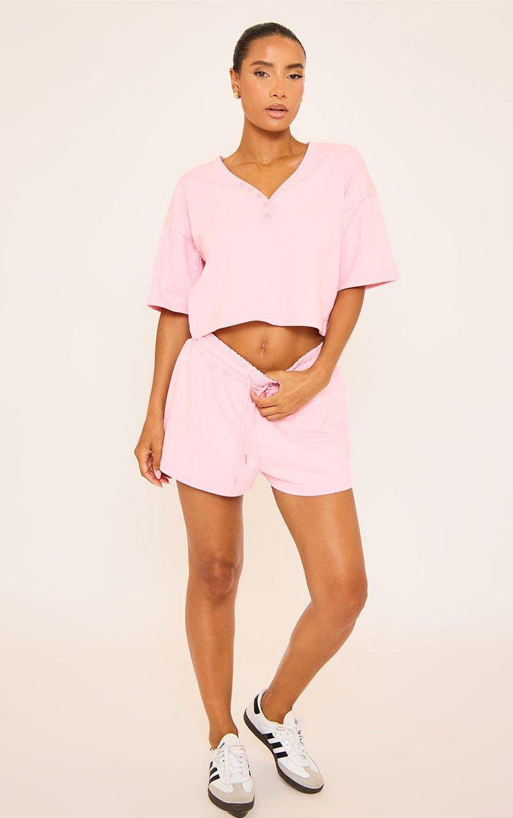 Mid Rise Drawstring Waist Detail Mini Sweat Shorts In Pink