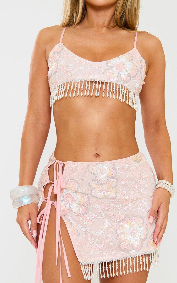 Sleeveless Tie Front Bralet Top In Pink And Brown Stripe