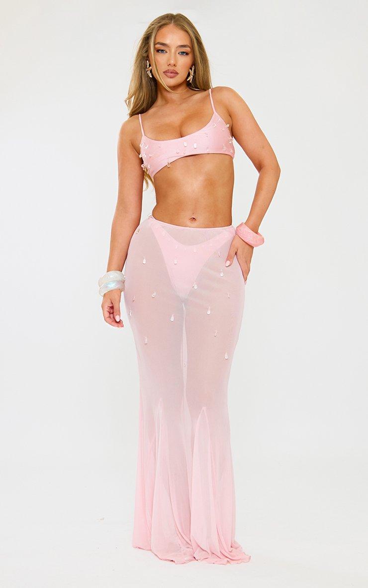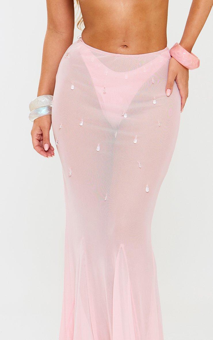 Dipped Waist Pearl Drop Embellished Fishtail Maxi Skirt In Pink