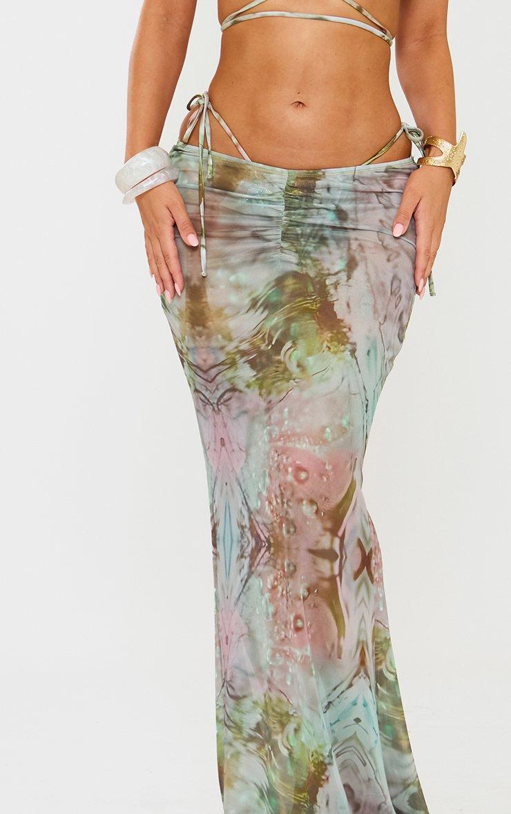 V Ruched Front Fishtail Maxi Skirt In Multi Print
